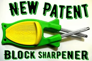 Knife sharpener handle has a new patent non- slip grip over shot added to bottom and top side of the knife sharpener, The Black ring you see in this image is to give you great grip when using them slippery surfaces. We also added our non- slip grip over the thumb grip on the top side. This thumb grip gives you great control when sharpening knives free hand. Like in the woods or Great outdoors, when there is no table tops available to work off.