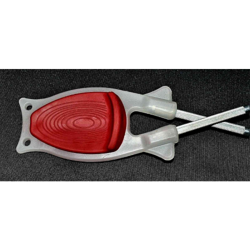 You will find with our unique flex design in our sharpener handle you can sharpen many different types of cutting edges. Like all V -shaped edges form 16 degrees threw 28 degrees, convent edges, serrated edges, scissor edges and odd shaped blades like snake shaped blades or daggers and hawkbill work knife.