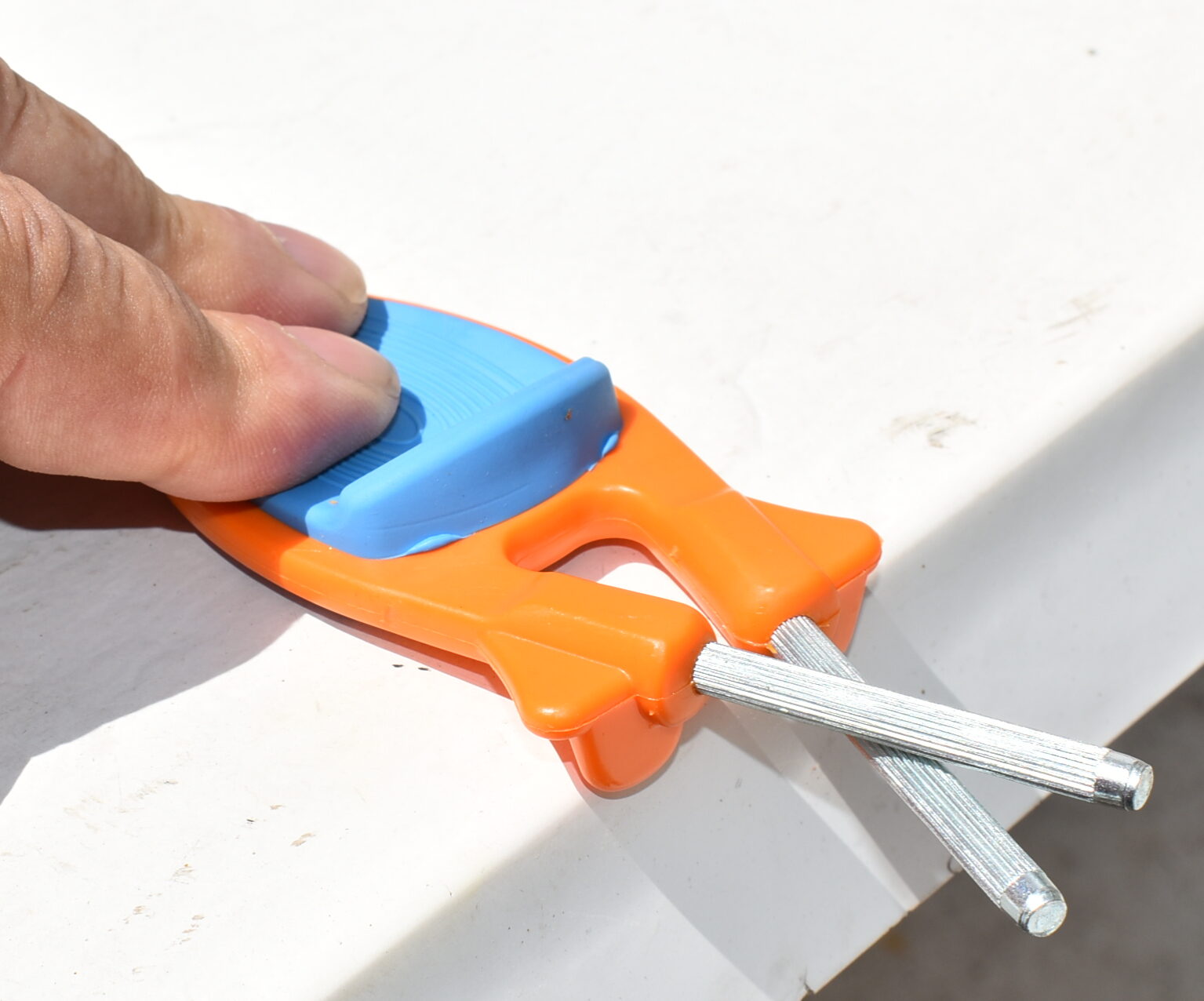 You will find with our unique flex design; you can sharpen many different type’s of cutting edges. Like all V – blades form 17 Degrees through 28 Degrees, Convex edge, Serrated edges, Scissor edge and odd shaped edges like found on Snake shaped Daggers and hawk bill blades.
