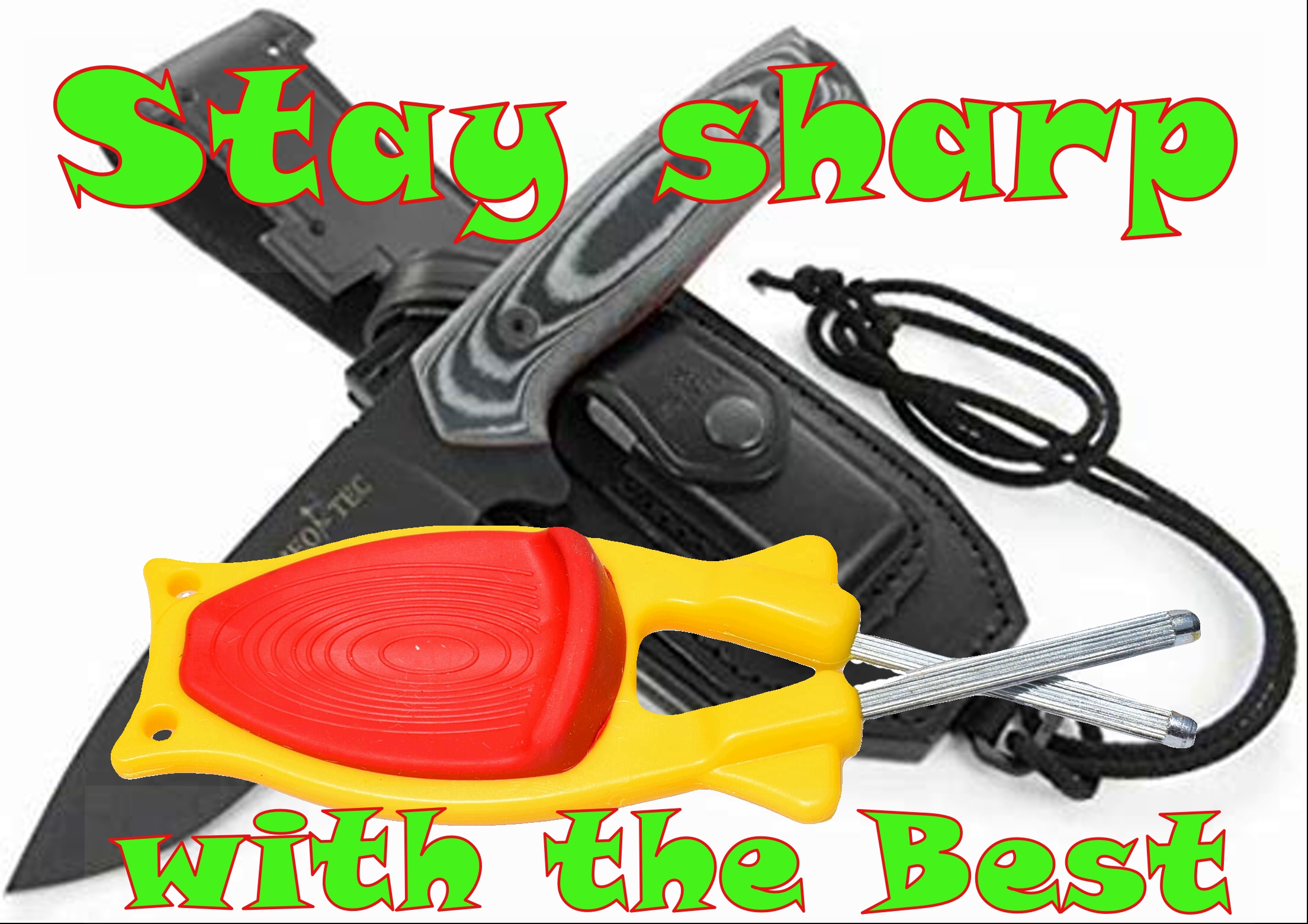 We can sharpen any cutting edges. Our Knife sharpener have a unique flex design made in the knife sharpener handle that allow the honing rods to adjust to your knife edge. There for you can only make your knives sharper when drawing your blades threw the Honing rods. We can sharpen your kitchen knives, pocketknives, hunting knives, swords, daggers, hatchets, machetes, scissor and any style serrated edges. See how to video’s on our website.