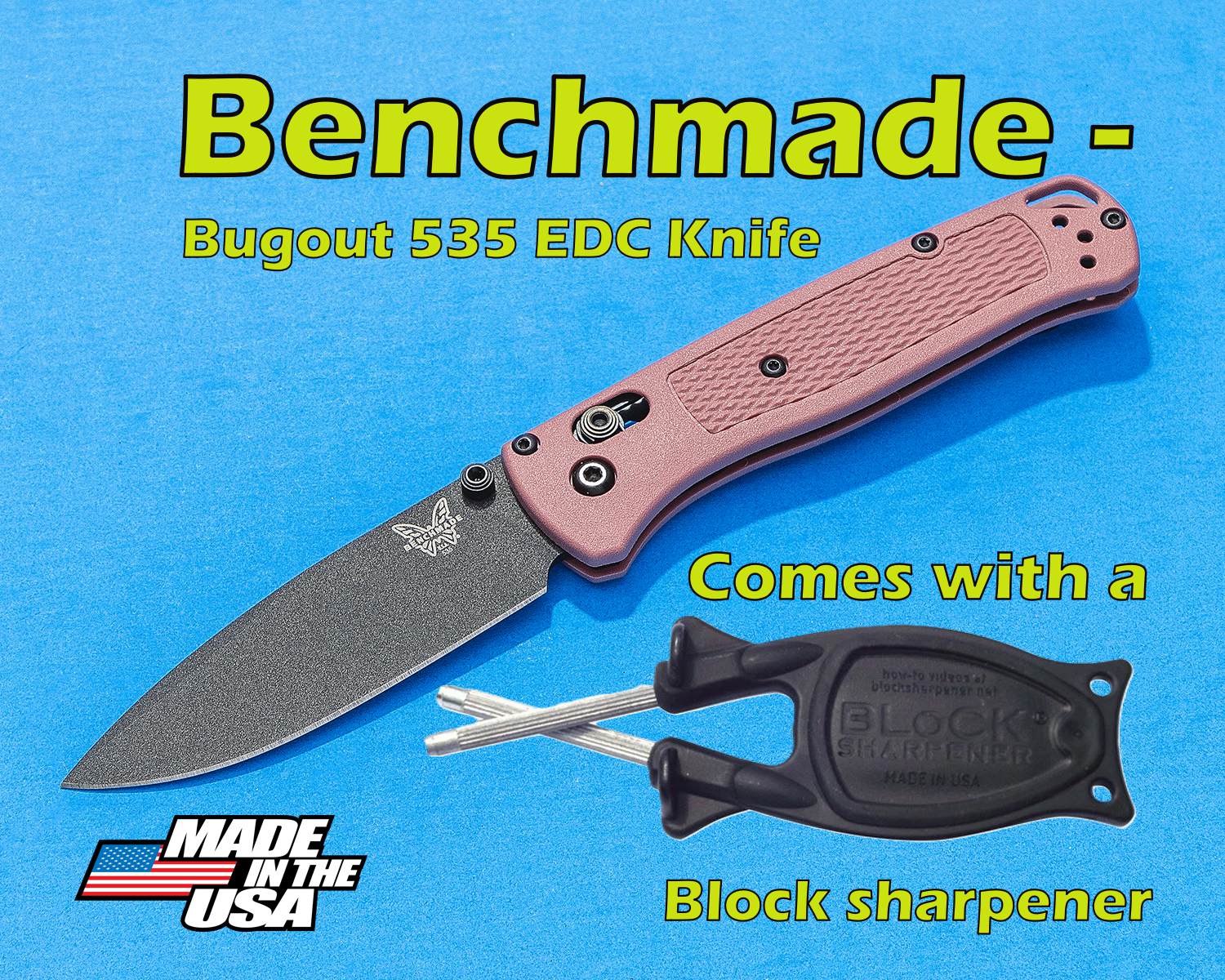 Bones, when you order this Benchmade Bug out knife you can add up to 6 more all black, Block knife sharpeners at discount price or add a key chain knife.