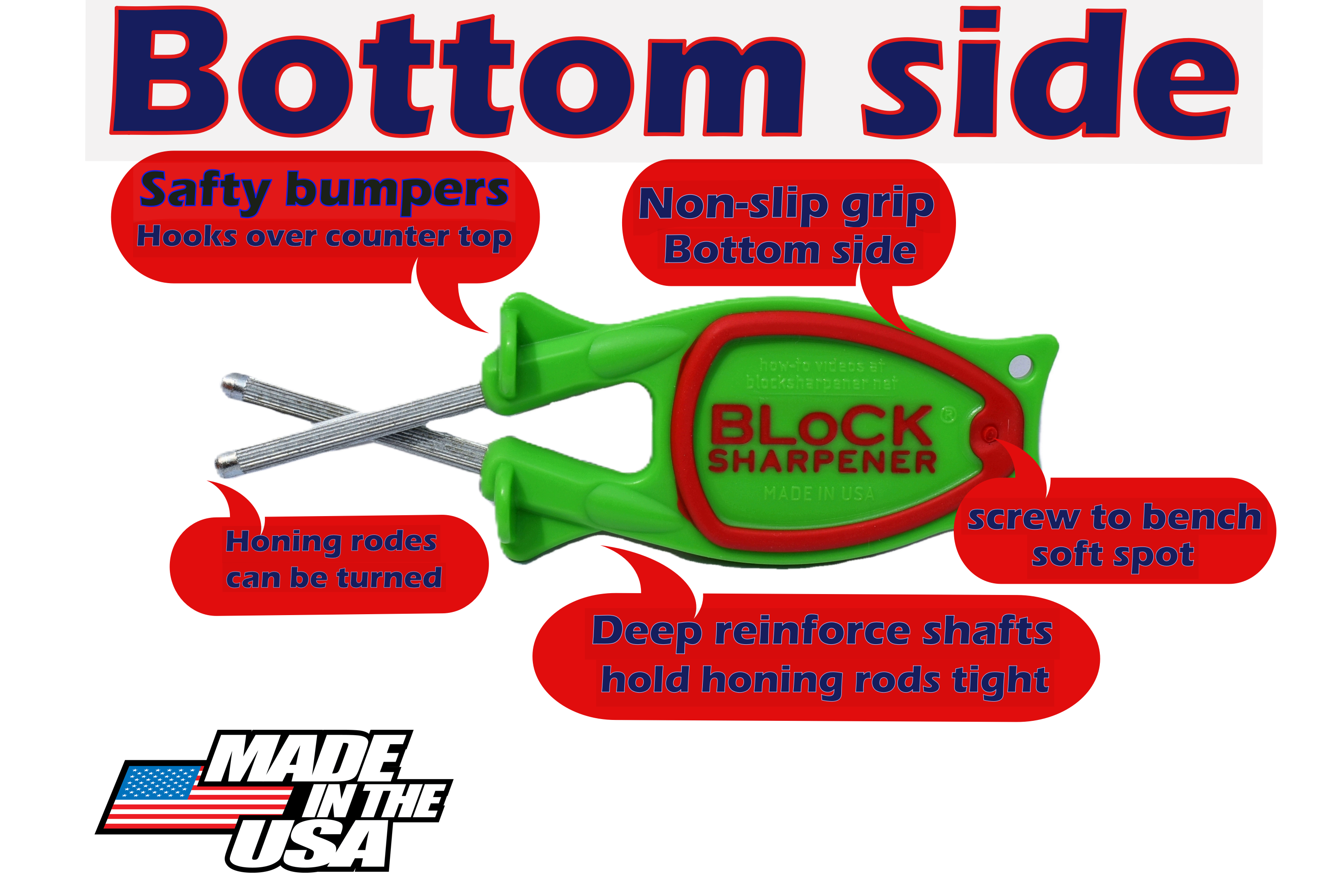 - What sets Block Sharpener apart is not just its sharpening prowess but also its dedication to safety. The sharpener boasts a new patent non-slip grip overshot on both the bottom and top sides of the handle.