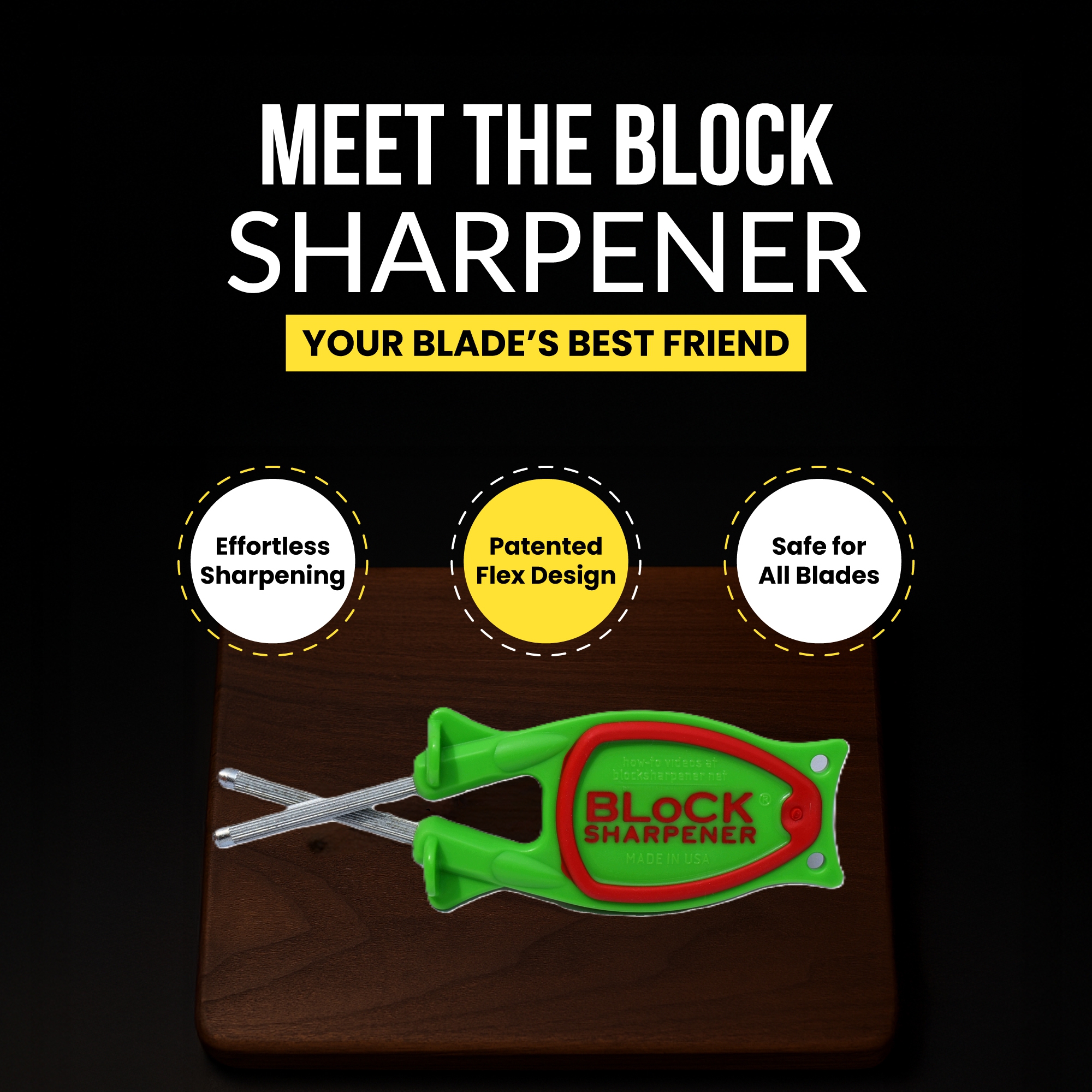 - Block Sharpener isnโt your run-of-the-mill knife sharpener; itโs a game-changer. Its unique patent flex in the sharpener handle design is nothing short of revolutionary. This feature enables the honing rods to adjust to any blade or cutting edge, making it incredibly versatile.