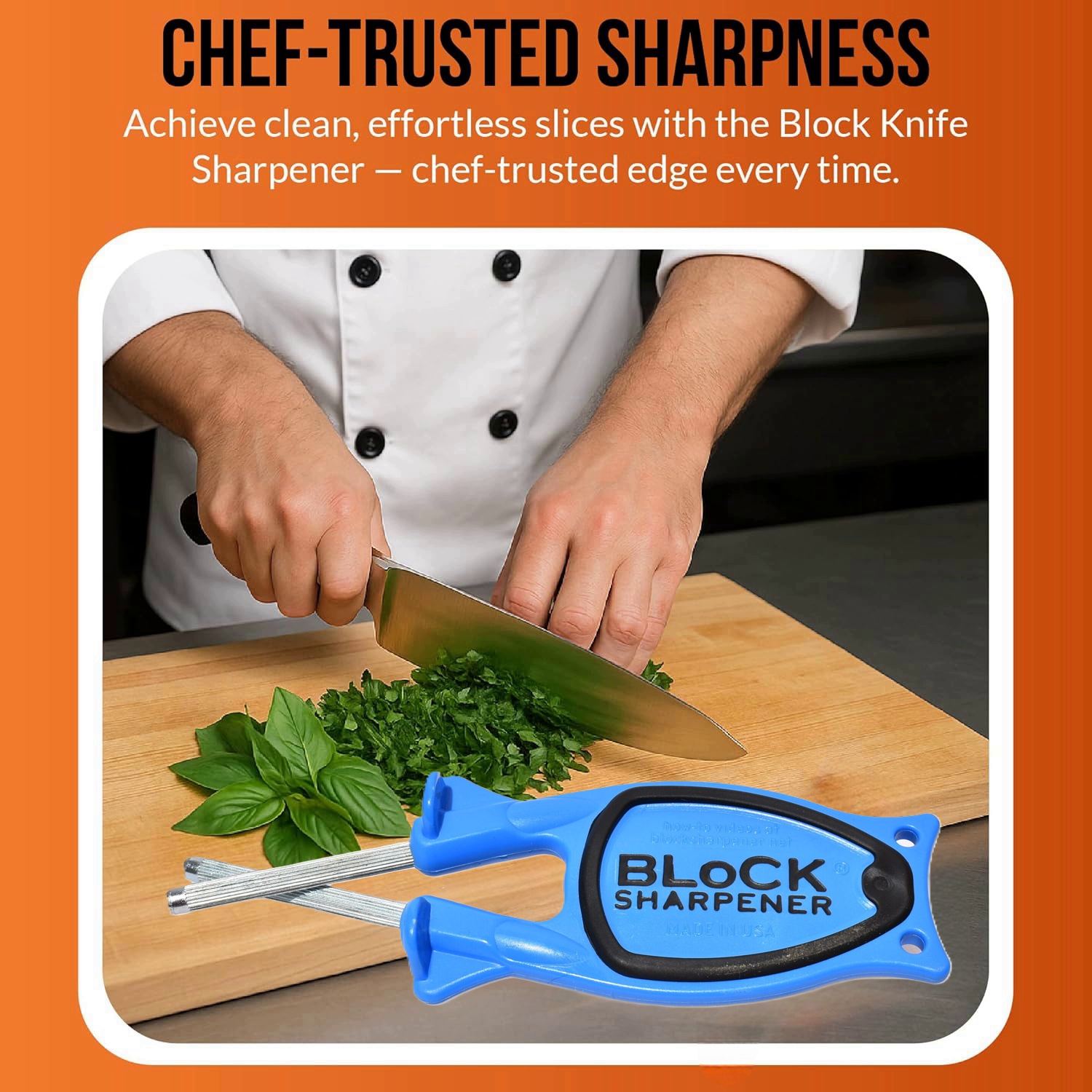 Blockโ€™s knife sharpener keeps your best blades razor-sharp and ready to use.