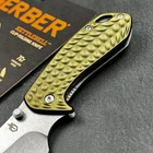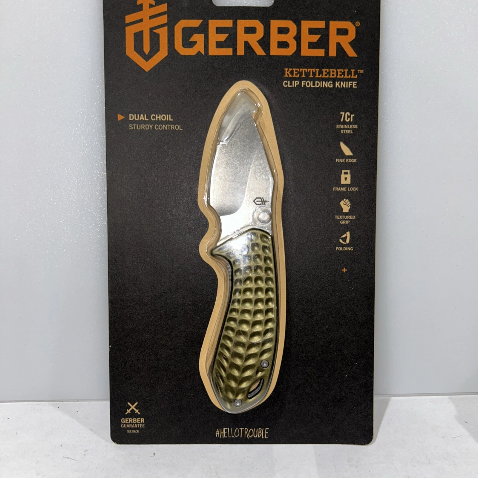 This Kettlebell model is outfitted with a sage green finished handle and a stonewashed clip point blade. The Gerber Kettlebell is a short and stout folding knife designed to be your go-to EDC companion. Despite its small stature, the Kettlebell is built tough to handle any large or small cutting job. An integrated lanyard hole and a stainless steel pocket clip complete the solid EDC design.