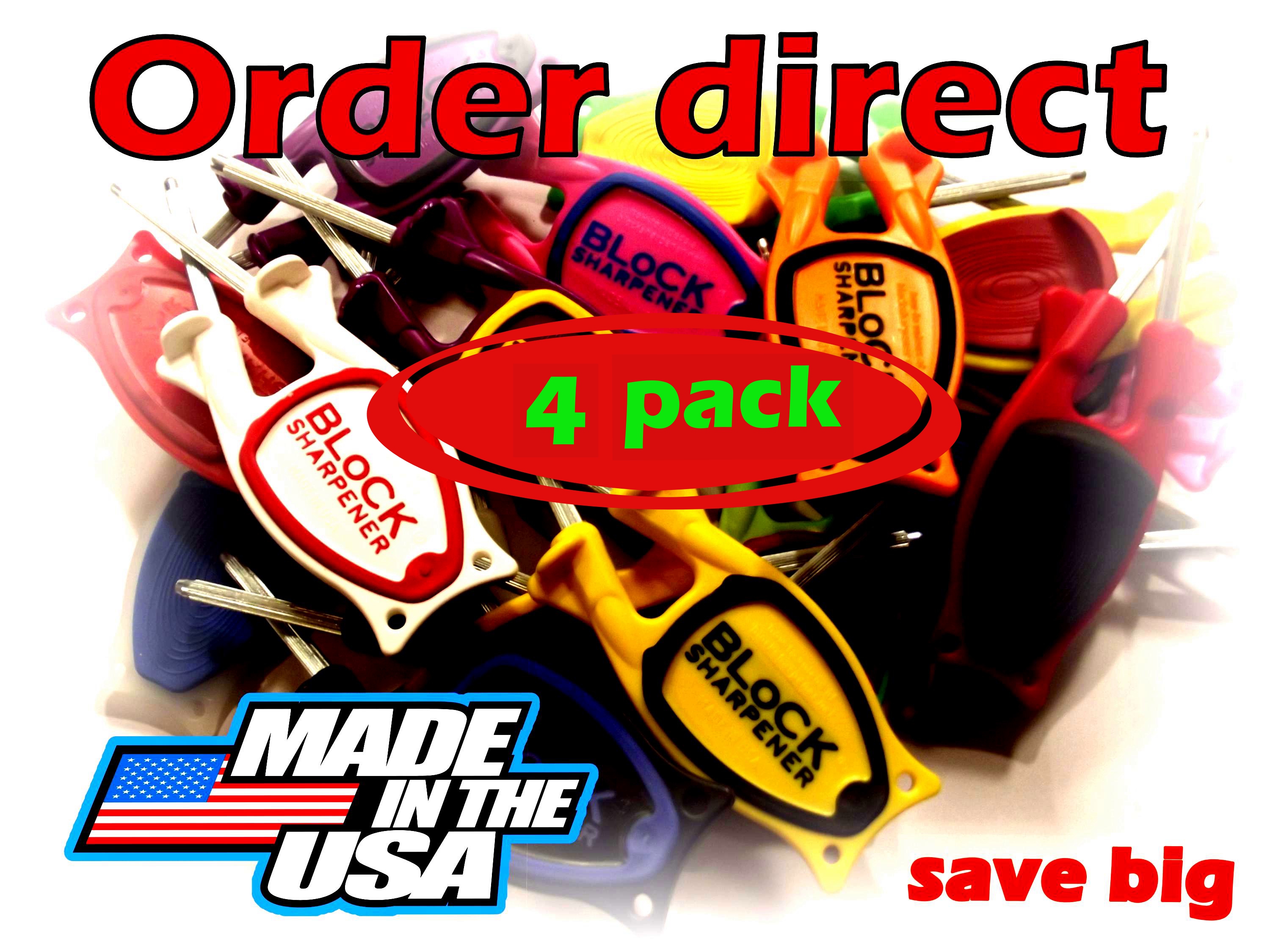 Order four Block sharpeners as gift ideas for family and friends. wright colors you would like in cheack out note. or we can mix them for you.