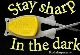 The Blocks Outdoorsmen knife sharpener, which handle glows in the dark, can sharpen various cutting edges. Block Knife sharpeners feature a unique flex design in the handles design, allowing the honing rods to adapt to your knife’s edge. Thus, you can enhance the sharpness of your knives by drawing the blades through the honing rods. You can sharpen kitchen knives, pocketknives, hunting knives, swords, daggers, hatchets, machetes, scissors, and any serrated edges. Instructional videos are available on our site.