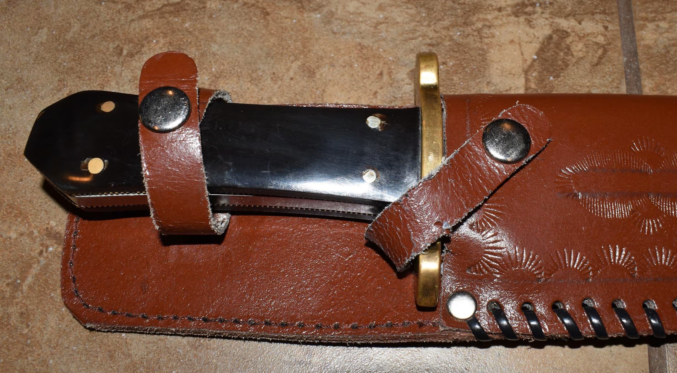 – The accompanying leather sheath is generally handmade and adorned with Native American-inspired or basket-weave designs, complete with a belt loop for convenient carrying.