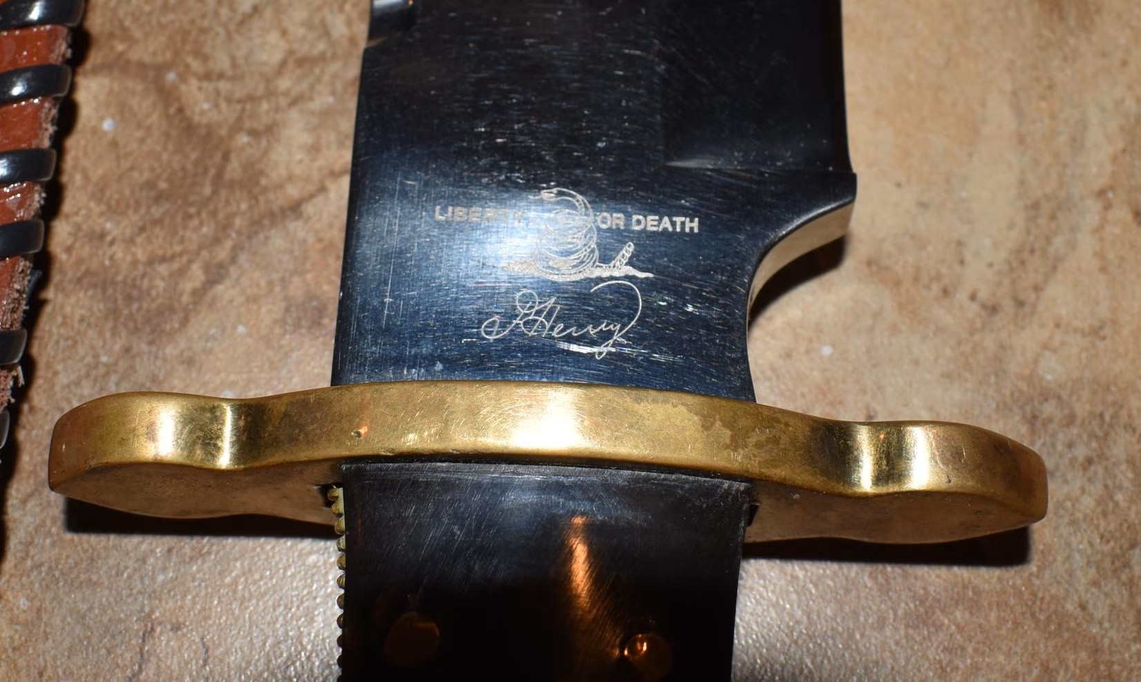 – The blade often includes the engraving “Liberty or Death,” accompanied by a coiled serpent and P. Henry’s facsimile signature on the ricasso.