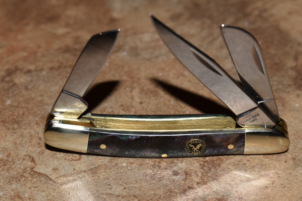 Eagle edge knife is a Kentucky Cutlery company is known for its high-quality pocketknives, 3 blade stainless steel 440-C blue bone Eagle Edge Pocket Knife.