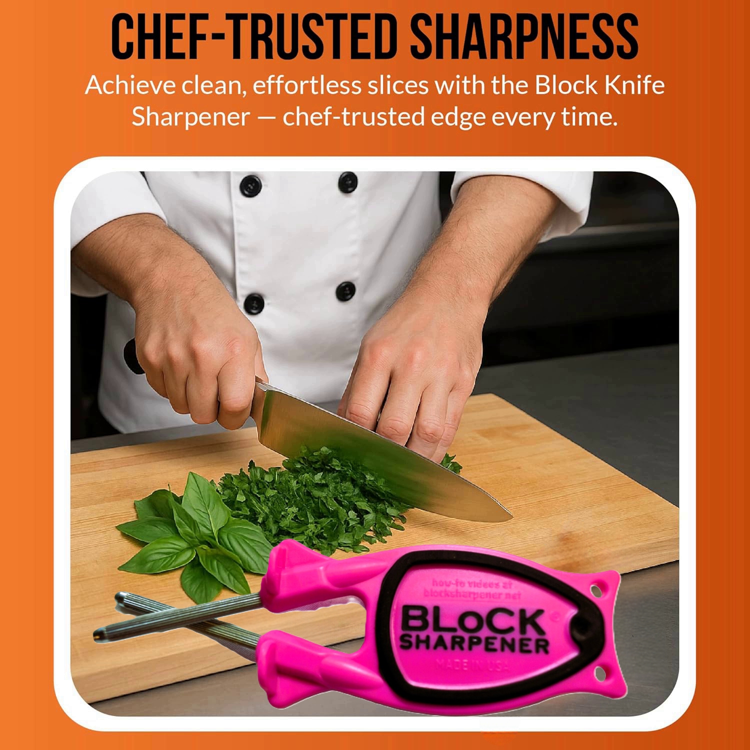 – Sharpening knives becomes a simple and efficient task with the Block knife sharpener.