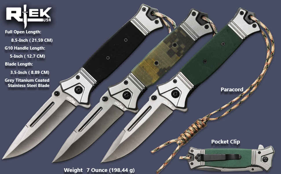 The Rtek RT 2013 Lightning Bolt Folding Knife features a 5-inch assisted opening blade, a built-in glass breaker, and a durable G-10 handle. It also comes with a Block sharpener to keep it razor-sharp for years to come.